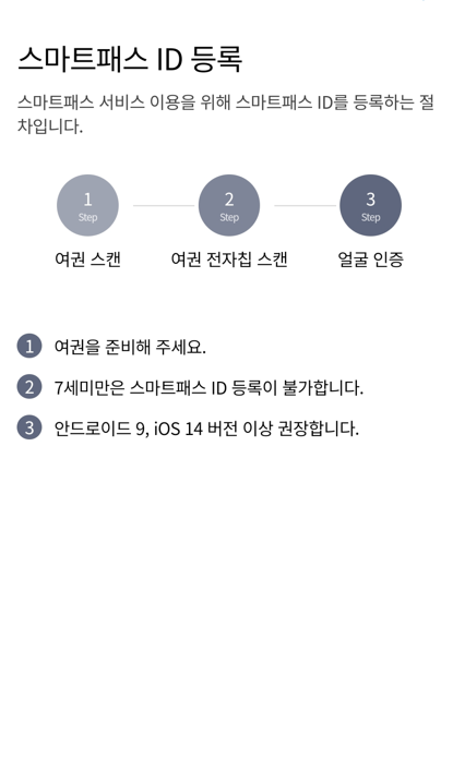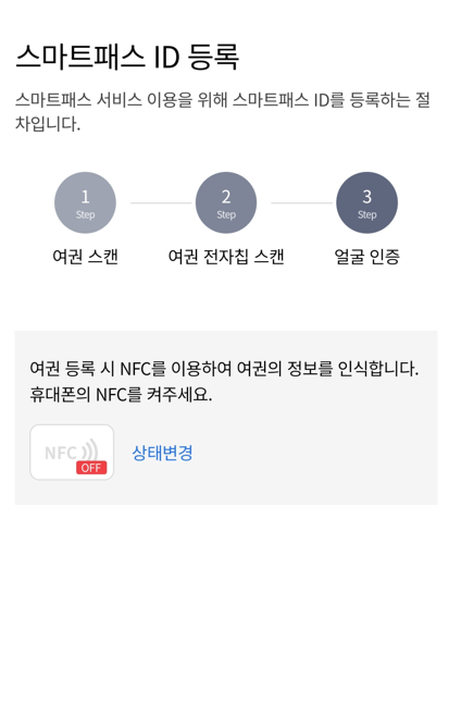 2) 스마트패스 ID등록 (여권 스캔 - 여권 전자칩 스캔 - 얼굴인증)
