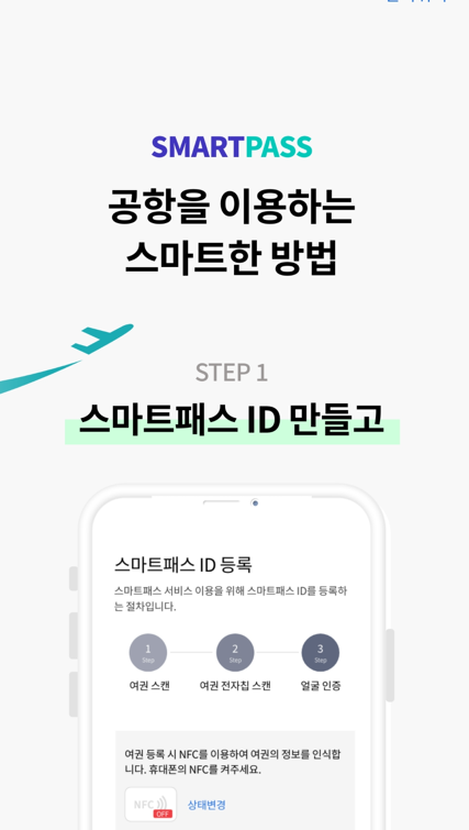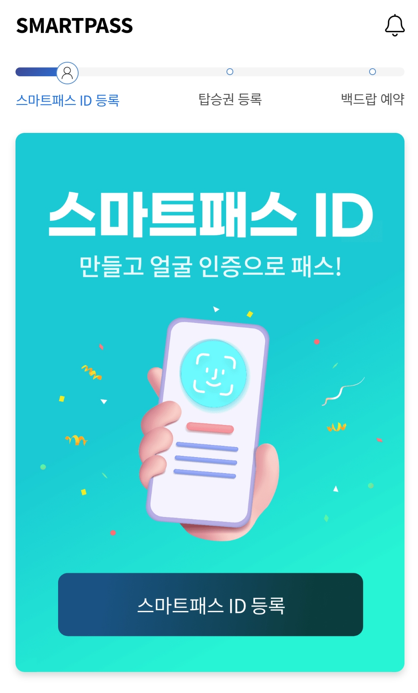 ID등록의 단계는 본인의 핸드폰으로 여권을 직접 스캔하는 과정 후 얼굴인증하는 단계이며, 이 과정을 마치게 되면 등록 이 완료되어 5년 동안 유효한 부분입니다. 최초 등록 후 5년 이내 여러 번 출국 시에도 탑승권 정보만 각각 입력하시면 스마 트패스를 지속적으로 이용하실 수 있습니다.