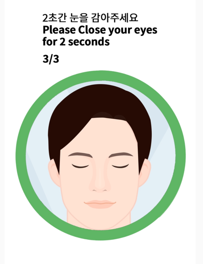 카메라 정면을 보고 정면얼굴 인식 후 지침에 따라 눈 2초간 감고 진행 후 완료 되었는지 확인하시면 됩니다.