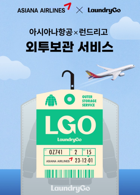 • 이용방법 : 인천국제공항 제1 여객터미널 지하 1층 동편 끝에 위치한 런드리고에서 아시아나항공 탑승권                                        (웹·모바일 포함)을 제시한 후 외투 보관