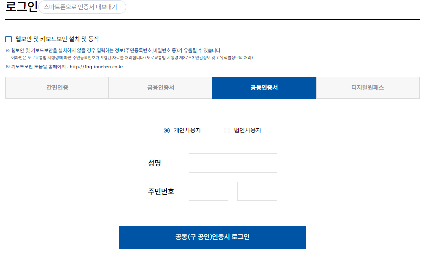 2) 별도의 가입절차 없이 "공동(구 공인) 인증서 로그인" 하시면 됩니다.