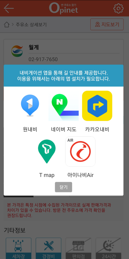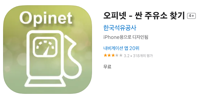 오피넷 웹 사이트(www.opinet.co.kr )에서 제공하는 전국 주유소(충전소)의 판매가격정보를 스마트폰에서도 동일하게 이용하실 수 있습니다. 제품별 판매가격, 부가 서비스(세차, 셀프, 행사 등), 위치 등 상세정보를 확인하실 수 있으며, 지역별 주유소, 경로별 주유소, 가짜석유 주유소 찾기 등 다양한 형태의 서비스를 제공합니다.