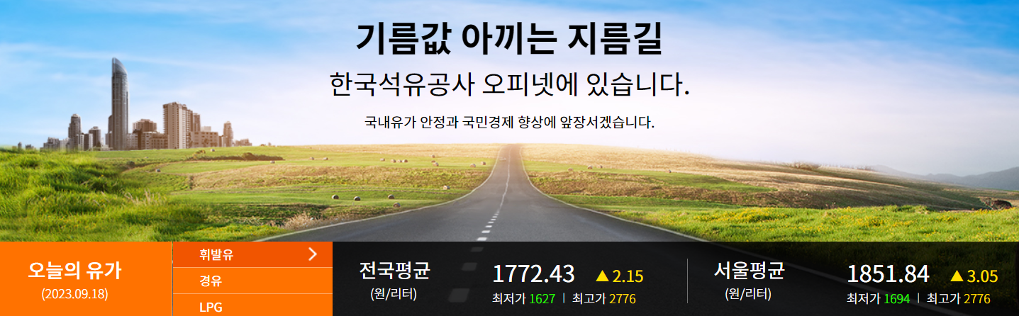 한국석유공사와 산업통상자원부에서 운영하는 유가정보 사이트 오피넷을 소개합니다.