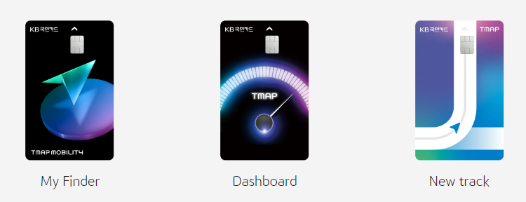 티맵을 이용하는 고객을 위한 신용카드로 티맵에서 제공하는 티맵 대리, 주차 등 다양한 모빌리티 관련 서비스 결제 시 기본 할인 30%, KB Pay로 결제 시 추가 할인 20%를 제공해 최대 50% 할인을 월 1만 5000원까지 제공하는 것이 특징입니다.