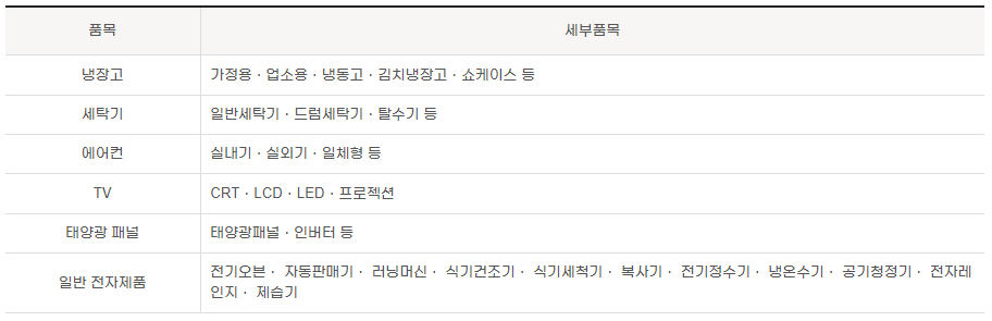 - 가정에서 배출되는 TV, 냉장고, 세탁기 등 사용하지 않는 폐가전