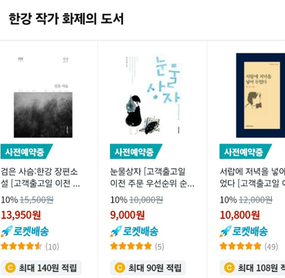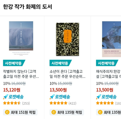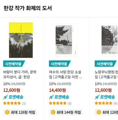 한강 작가 사전예약 도서 리스트