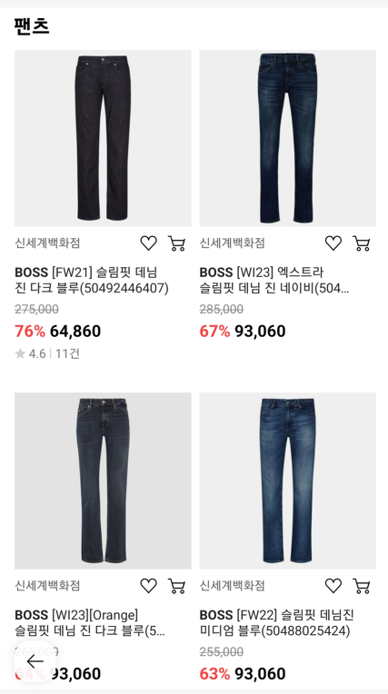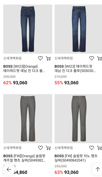 - 품목 : 데님 진, 치노 팬츠, 캐주얼 팬츠 등