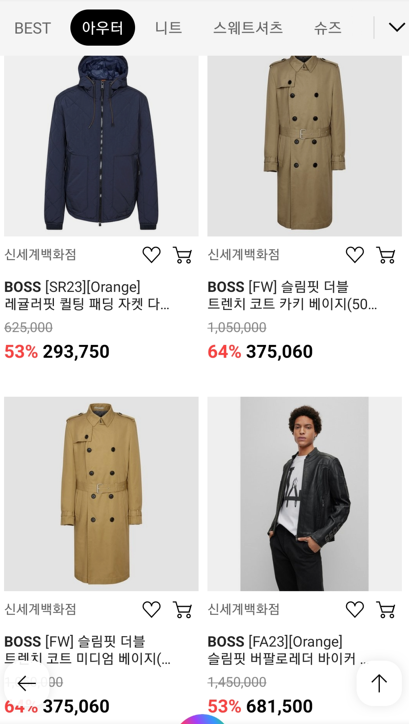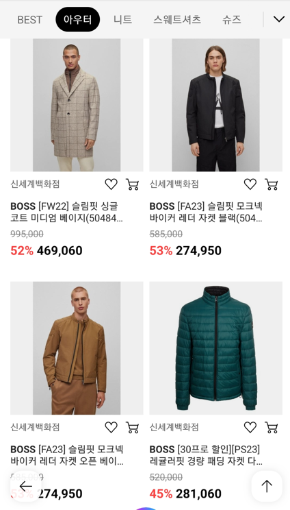 세계적인 명성으로 프리미엄 남성복을 선도하는 휴고보스는 도시시적인 감각과 자연스럽게 흘러내리는 듯한 포멀 한 느낌이 절제미와 우아함까지 가미되어 더욱 멋스러운 브랜드입니다. 11월 쇼핑의 계절을 맞아 보스 매니아분들께 최대 76% 할인의 득템정보를 알려드립니다. 겨울 아우터, 니트, 스웨트 셔츠, 팬츠 데님 까지, 최저가 6만 원대부터 말이 안 되는 득템의 기회이니, 품절 전 빠르게 둘러보시고 최저가 득템의 기회가 되시기 바랍니다.