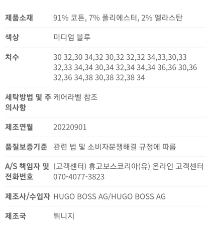 1. Boss Jean 슬림핏 데님진 미디엄 블루