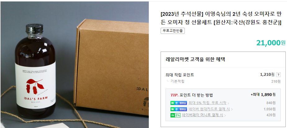 - 과일·버섯(샤인머스켓, 표고버섯, 곶감, 녹각영지진액 등) 등
