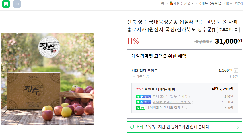 레알리마켓은 ㈜네오게임즈에서 운영하는 온라인 농산물 상점으로 국내 육성 품종(국내 재배 포함) 농산물과 가공품 등을 홍보하고 판매하고 있습니다.