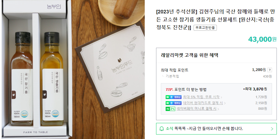 고물가로 인해, 추석명절 선물 준비에 고심이 많을 터인데, 품질좋은 국내산 농산가공상품과 2~6만원대 합리적인 가격으로 스마트하게 준비할 수 있는 기회라 함께 공유해 드립니다.