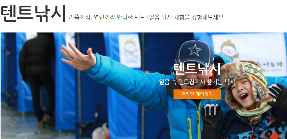 - 프로그램 : 텐트낚시, 얼음낚시, 맨손잡기, 놀이시설, 어린이낚시, 먹거리촌 등