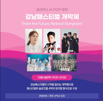 - 주제 : 2023 강남페스티벌 개막제"PAINT THE FUTURE, REBOOT GANGNAM"