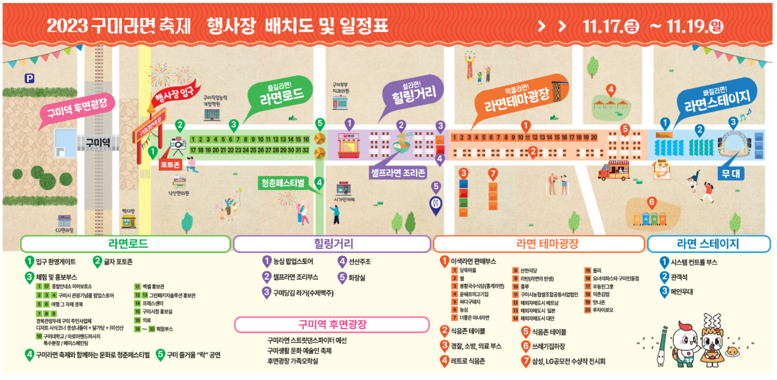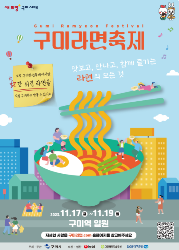 본격적인 겨울추위 전 마지막 지역축제인 구미라면축제에 많은 분들께서 즐겁고 추억에 남는 시간이 되시길 바랍니다.