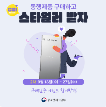 2023 동행축제는 대한민국 경제의 새로운 활력을 위해 대형유통사, 중소기업·소상공인, 전통시장 등이 다 함께 힘을 합쳐, 온 국민이 함께 즐길 수 있는 소비축제입니다. 온라인 특별기획전, 라이브커머스, 지역축제 연계 판매전, 소비촉진 이벤트 등 다양한 행사가 진행이 되며, 특히 대박이벤트는 구매와 상관없이 LG스타일러, LG무선 청소기, 온누리 상품권 등 대박 경품 응모가 진행이 되어 행운의 찬스를 잡으실 수 있습니다.