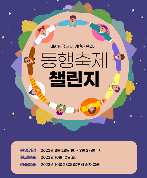 2023 동행축제에서는 다양하고 합리적인 가격의 물건들을 구매하고 다양한 이벤트에 참여하여 행운의 기회까지 덤으로 얻을 수 있습니다. 내수활성화 추진에 기여하고 함께 상생하여 서로가 윈윈 하는 소비축제에 푸짐한 선물의 혜택과 함께 즐거운 쇼핑을 하시기 바랍니다.