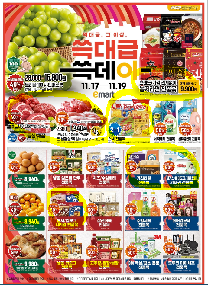 : 식품 / 생활용품 전품목 50% 할인에 교차구매도 가능한 매력적인 역대급 이마트 11월 행사입니다.