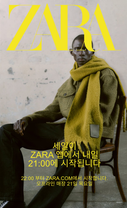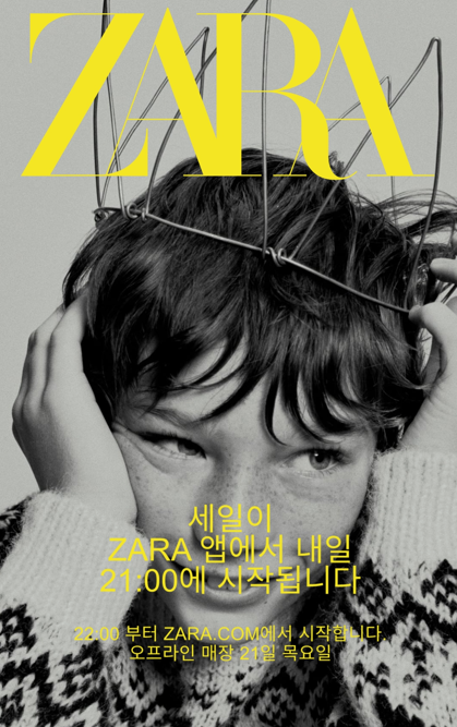 - 자라 세일 시작일 : 온라인 - 12월 20일(수) 자라 어플 (PM 20:00), 자라 공홈 (PM 21:00) 오프라인 전국매장 - 12월 21일(목)