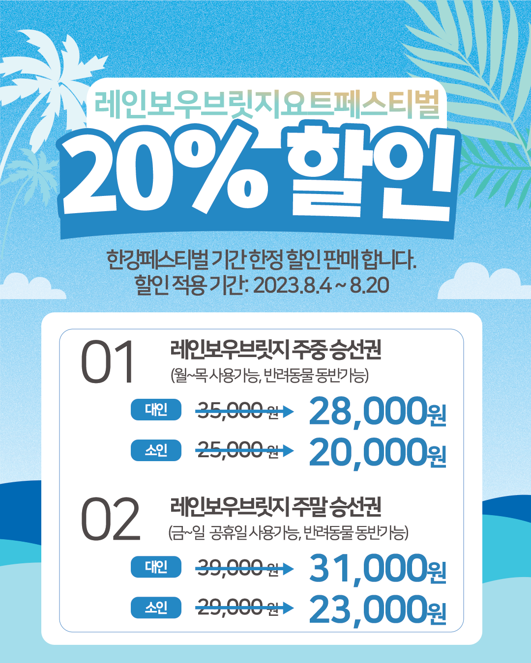 일별 선착순 한정 예약이기 때문에 조기 마감될 수 있으니, 20% 할인 된 가격으로 서둘러 예약을 추천 드립니다.