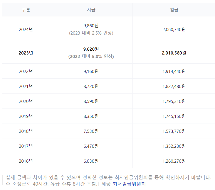 2024년 최저시급은 이전 연도와 비교하여 약 2.5% 정도 인상된 9,860원으로 확정되었습니다. 그러나 이번 발표에도 불구하고 노동계는 여전히 아쉬움의 목소리를 내고 있습니다.