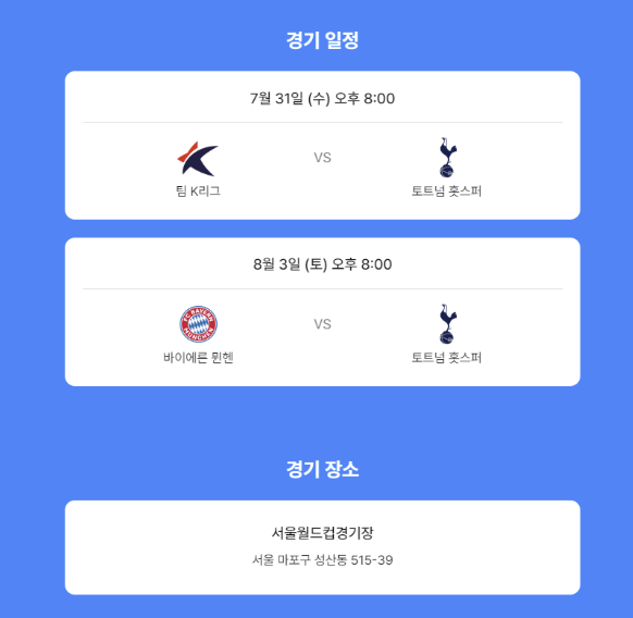- 팀K리그 vs 토트넘 훗스퍼 : 7월 31일(수) 오후 8:00