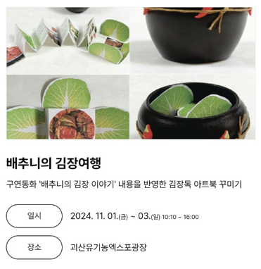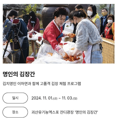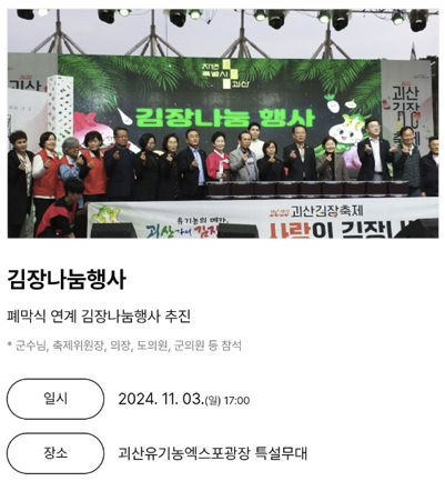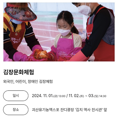 - 장소 : 괴산유기농엑스포광장 막구조물 " 원-스톱 김장 구역"