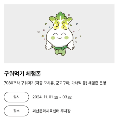 - 장소 : 괴산 유니공엑스포광장 잔디광장 '김치스토리역사관 앞'