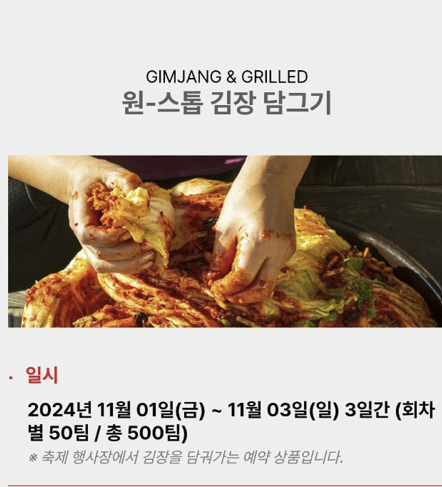 - 내용 : 축제 행사장에서 김장을 담궈가는 예약 상품