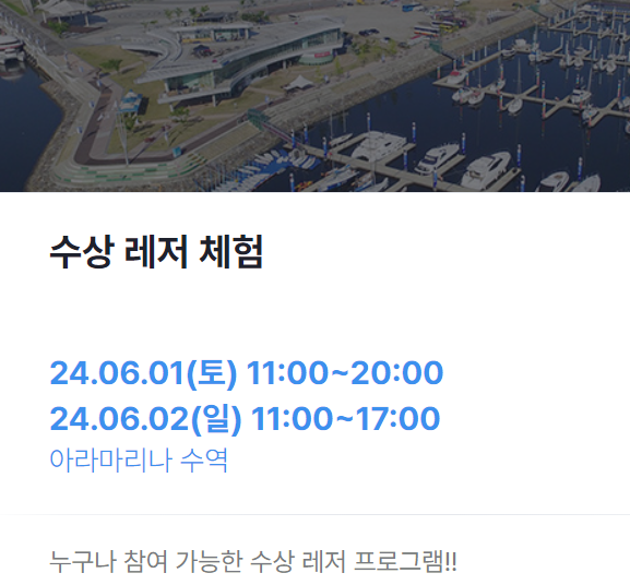 - 장소 : 김포 아라마린 일원 (아라마린센터 : 김포시 아라육로 270번 길 73)