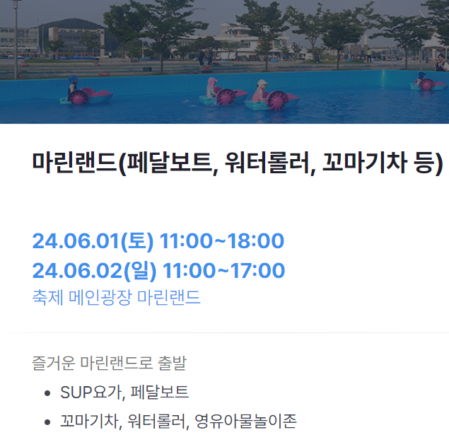 - 마린랜드(SUP요가, 패들보트, 워터롤러, 꼬마기차 등)