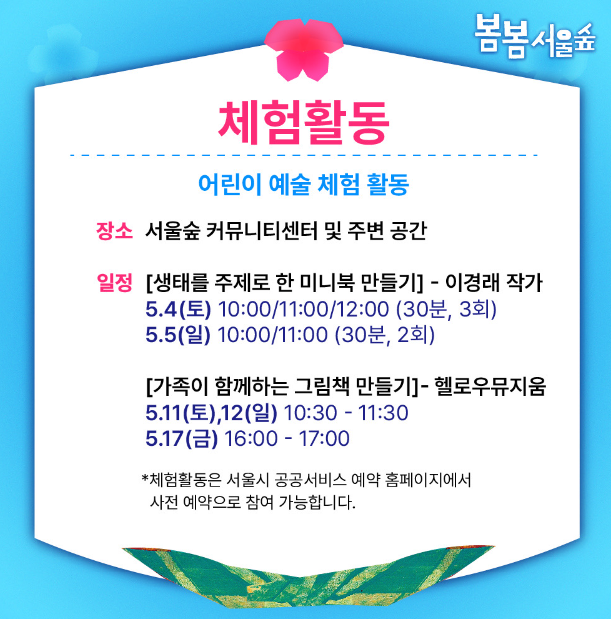 # 체험활동은 4월 25일 오전 9시부터 사전예약 후 참여가능 합니다.