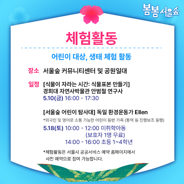 # 체험활동은 4월 25일 오전 9시부터 사전예약 후 참여가능 합니다.