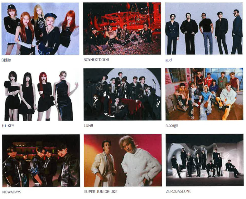 - 라인업 : ▲지오디 ▲슈퍼주니어-D&E ▲제로베이스원 ▲보이넥스트도어 ▲나우어데이즈 ▲엔싸인 ▲루네이트 ▲하이키 ▲빌리