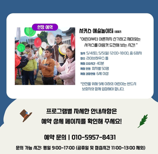 - 현장예약 프로그램 : 함께 배우는 서커스 체조, 서커스 예술놀이터