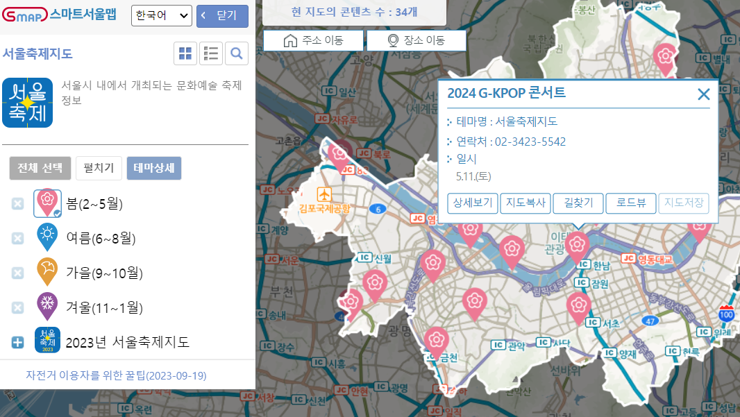 서울시에서 개발한 스마트서울맵, 서울축제지도를 활용하시면 보다 편하게 정보를 얻으실 수 있습니다. 2024 서울축제 봄편을 잘 확인하시고 5월 가정의달을 더욱 즐겁게 보내시기 바랍니다.