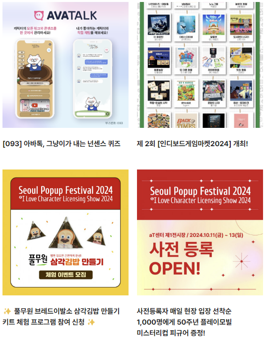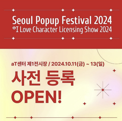 서울 팝업 페스티벌 2024 & 아이 러브 캐릭터 라이선싱 쇼 2024가 서울 양재역 인근의 aT 센터 전시장에서 10월 11일(금)부터 10월 13일(일)까지 사흘간 진행됩니다. 캐릭터에 관심이 많으신 분들께는 더할 나위 없는 팝업의 신세계를 경험하실 수 있으며, 무료관람을 위해 사전 등록을 하시기 바랍니다.