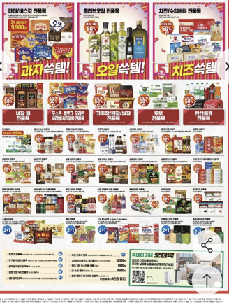 6) 냉동 만두, 시리얼, 냉동 핫도그, 치즈/수입버터, 오일, 삼진어묵, 고추장/된장/쌈장 키틴차월, 주방세제,/마미포코/페넬로페 기저귀 전품목 2개 이상 구매 시 50% 할인