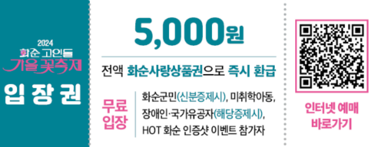 - 입장료 : 5천원 (화순사랑상품권으로 전액 즉시 환급)