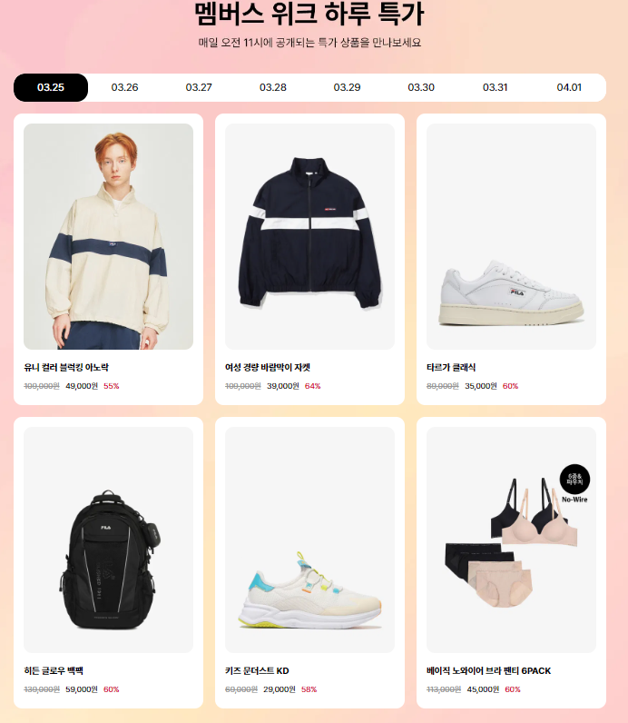 1. 2024 휠라(FILA) 멤버스위크 기간 : 03.25~04.01