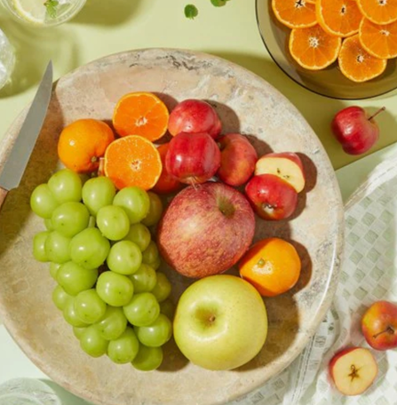 - 구성 : 큐레이션 박스는 ‘불로초감귤(400g)’, ‘샤인머스캣(750g)’, ‘별사과(400g)’, ‘황금사과(300g)’, ‘부사(300g)’ 5종 과일로 구성.